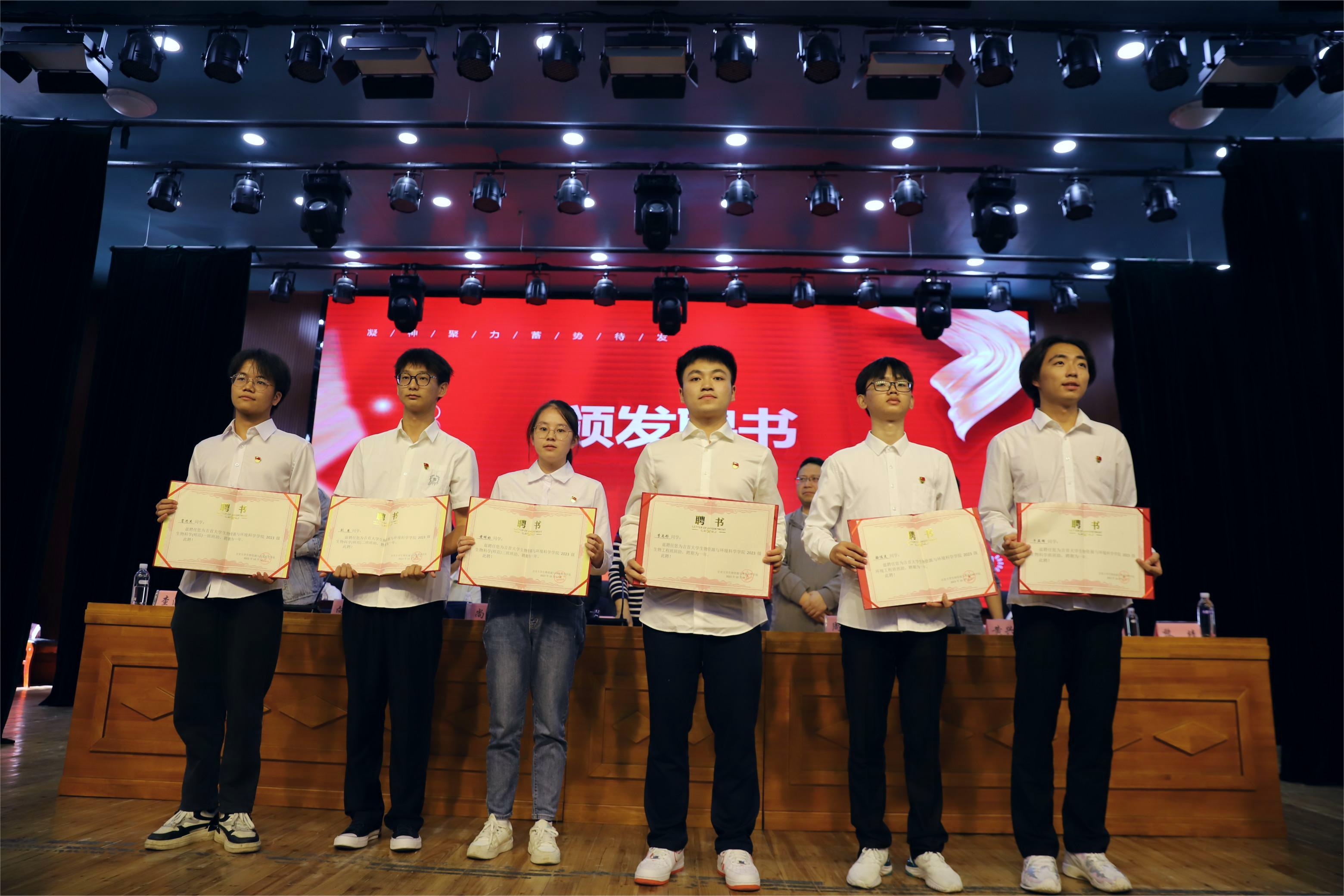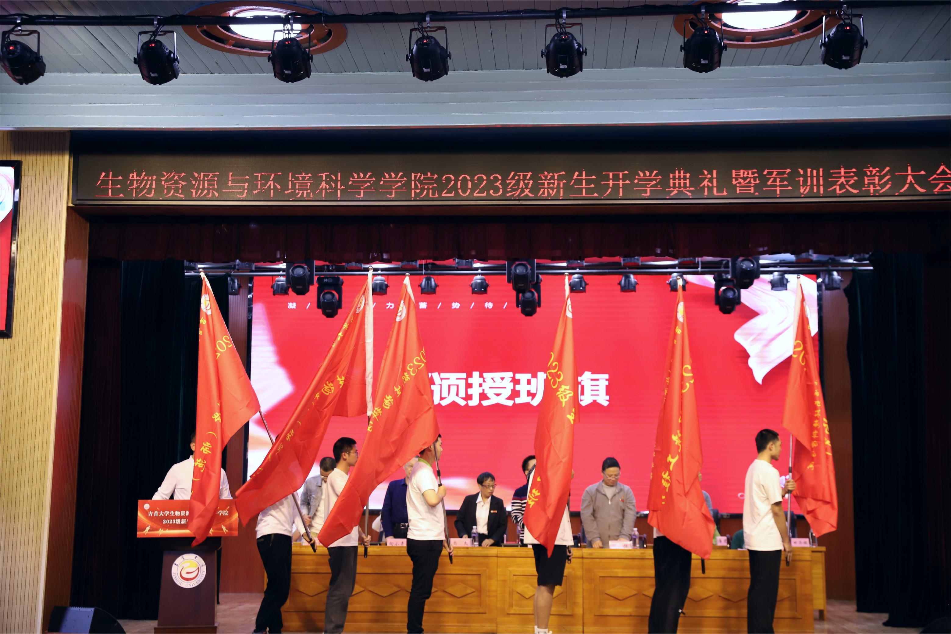 典礼期间,尚久对2023级本科班主任、班主任学生助理任命文书以及军训先进个人与军训优秀教练员表彰文件进行宣读。而后,院领导颁发班主任、班主任学生助理聘书和军训优秀教练员证书、纪念品与军训先进个人证书。最后,我院院领导颁授新生班旗,向小奇带领全体2023级新生进行入院宣誓。