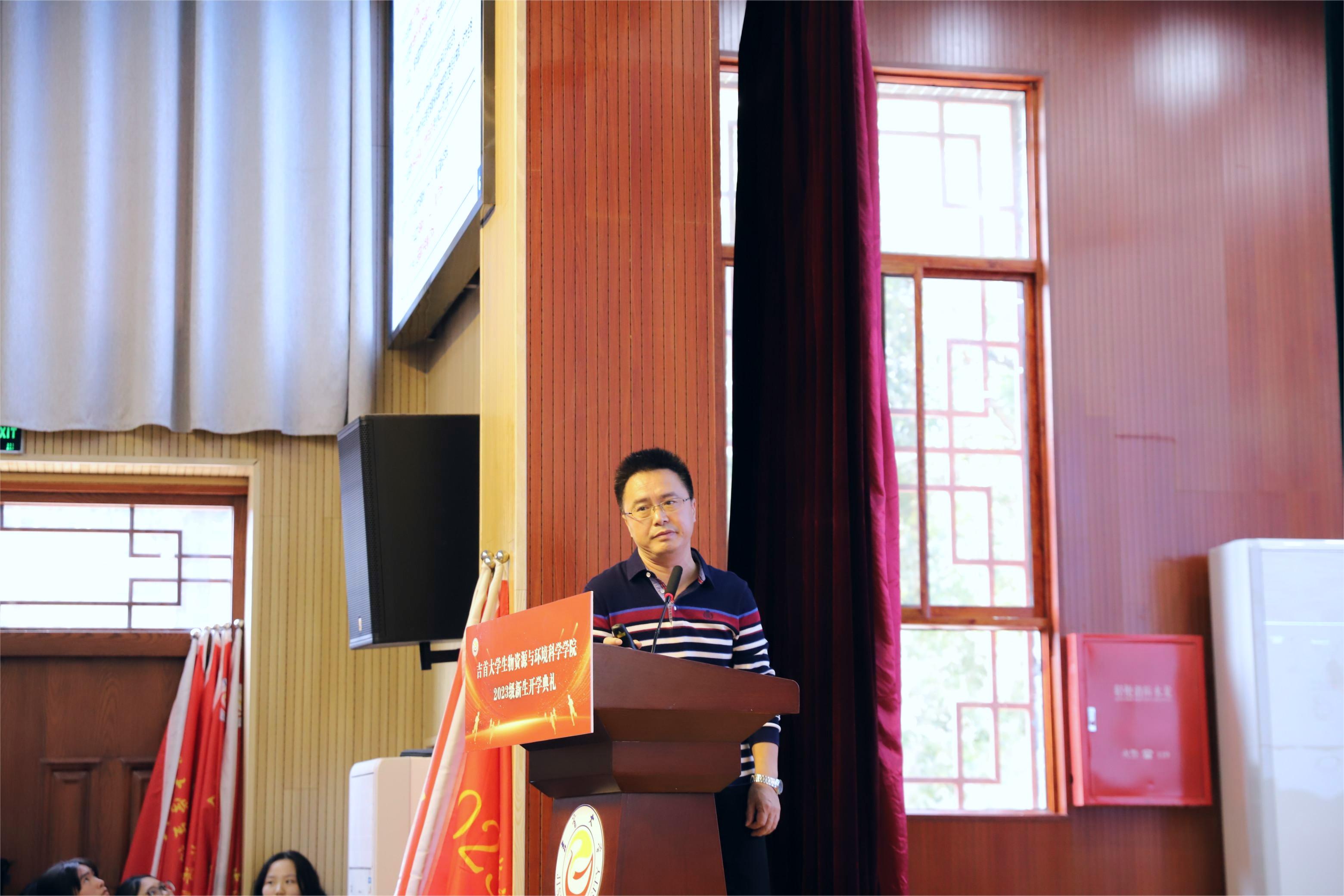 典礼伊始,全体起立,奏唱国歌。随后,彭清忠致辞,代表学院欢迎2023级全体新生加入资环学院大家庭,并就学院简史与概况、管理队伍与师资、本科专业与硕士点建设、办学条件、学生培养、建议与期望六个方面进行详细介绍,希望同学们通过大学四年的学习,争取成为一个知书识礼、诚信担当、超越阳光的人。紧接着,教师代表查满荣、毕业生代表瞿昕怡、学生干部代表王梓妍、研究生新生代表王心媛、本科新生代表姚闯先后上台发言。他们结合自身经历分享了自己的心得体会,并表达了对新生们的殷切期盼,激励新生们把握当下、勇往直前。