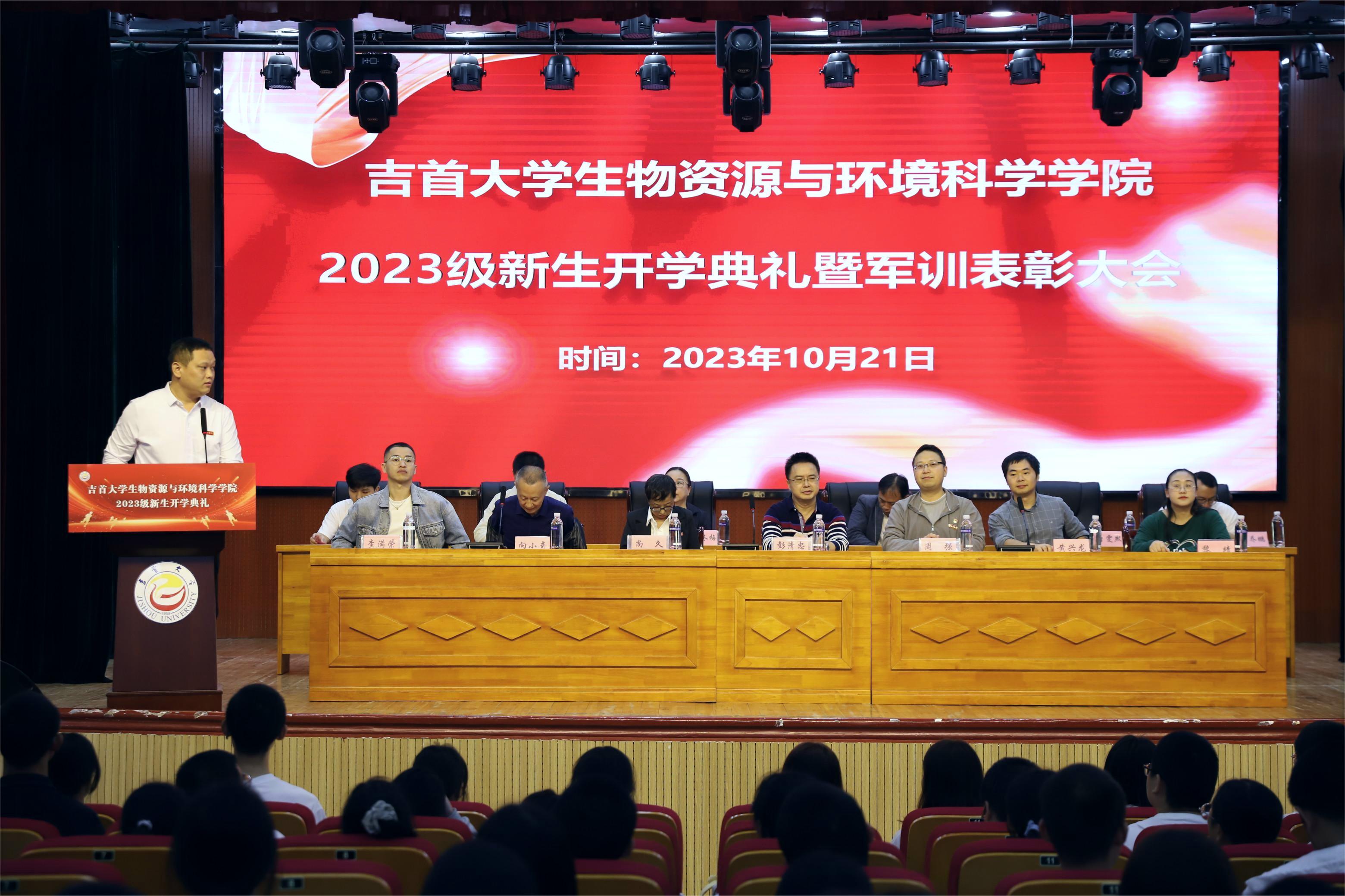 本网讯(通讯员 姚佳乐、张慧琳)10月21日下午,我院于大田湾校区礼堂举行2023级新生开学典礼暨军训表彰大会。与会人员有我院院长彭清忠,副院长周强,党委副书记尚久,院关工委副主任向小奇,院长助理黄兴龙、查满荣,教务秘书黎靖,辅导员任志君、闫亮、唐雯熙、杨睿,2023级班主任及全体新生。会议由2023级新生辅导员任志君主持。