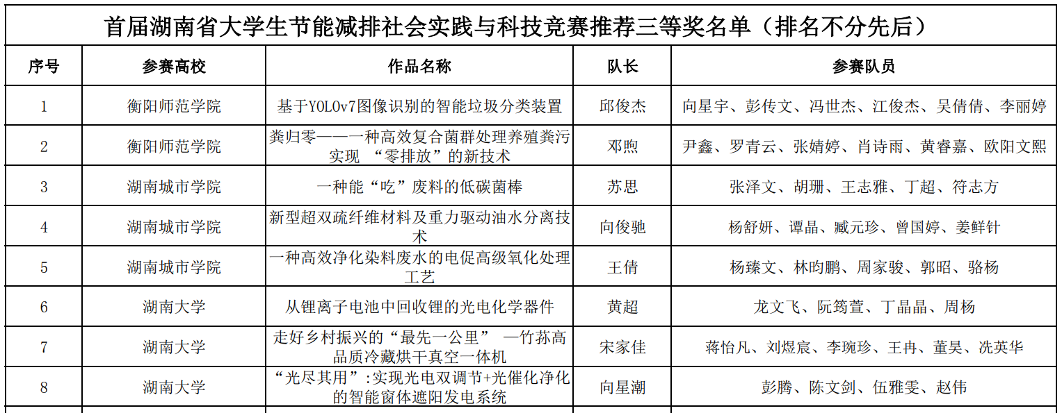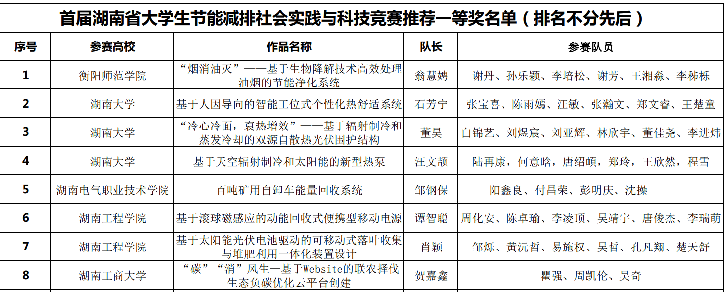 湖南省大学生节能减排社会实践与科技竞赛(A类)