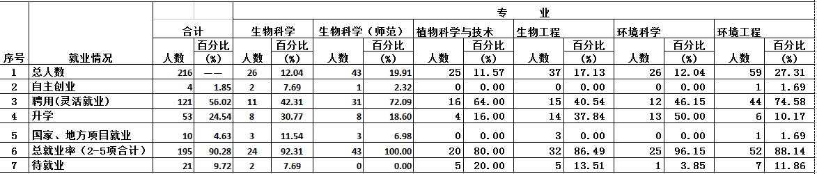 资环学院2015届本科毕业生初次就业情况表