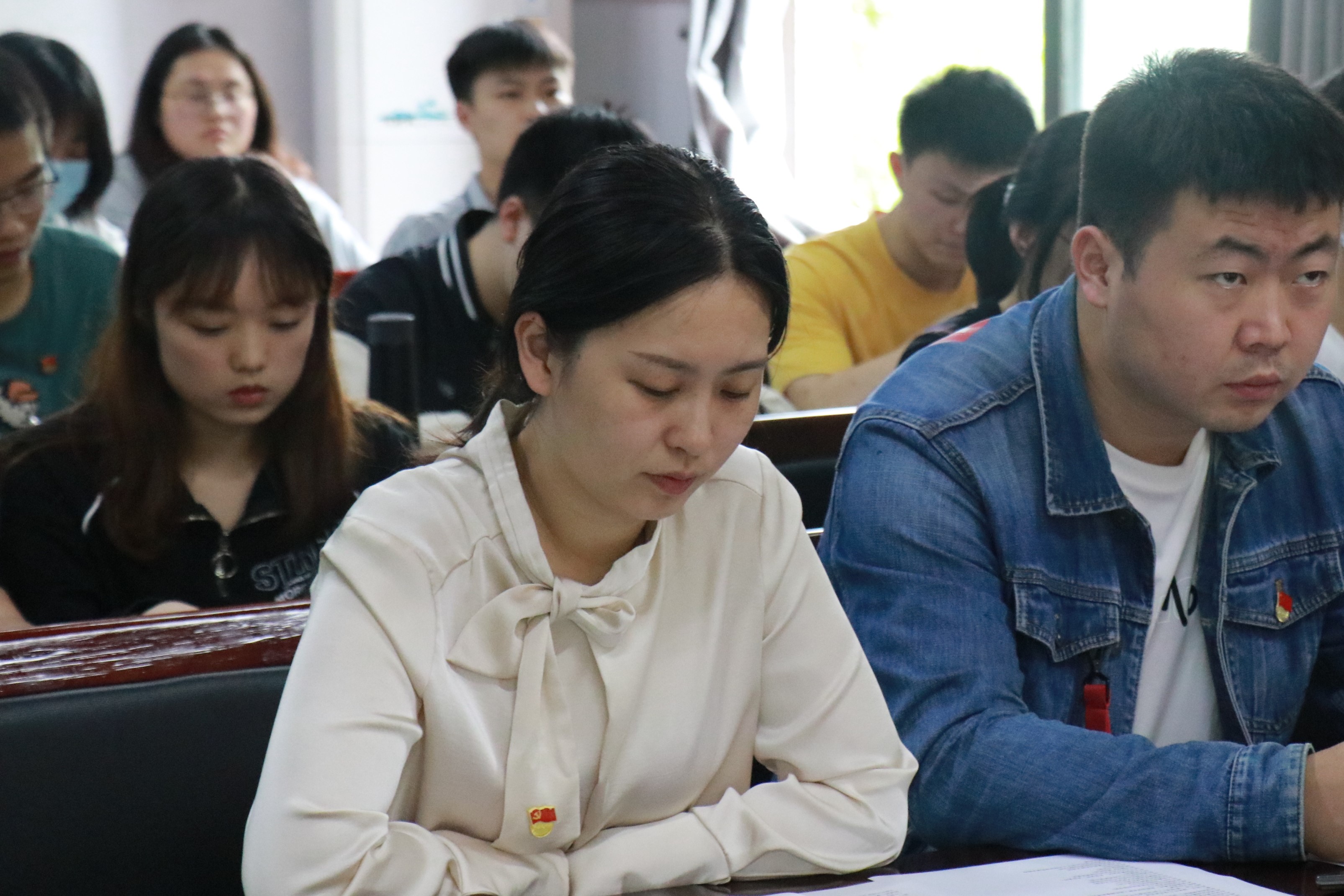 会议最后,全体成员起立合唱国际歌,面对党旗进行入党宣誓并举行党徽授予仪式。唐雯熙对本次被吸收的发展对象表示祝贺与肯定,要求同志们不仅要组织上入党,更要在思想上入党,要在生活中起到先锋模范作用,用实际行动来感染、带动身边更多的人。