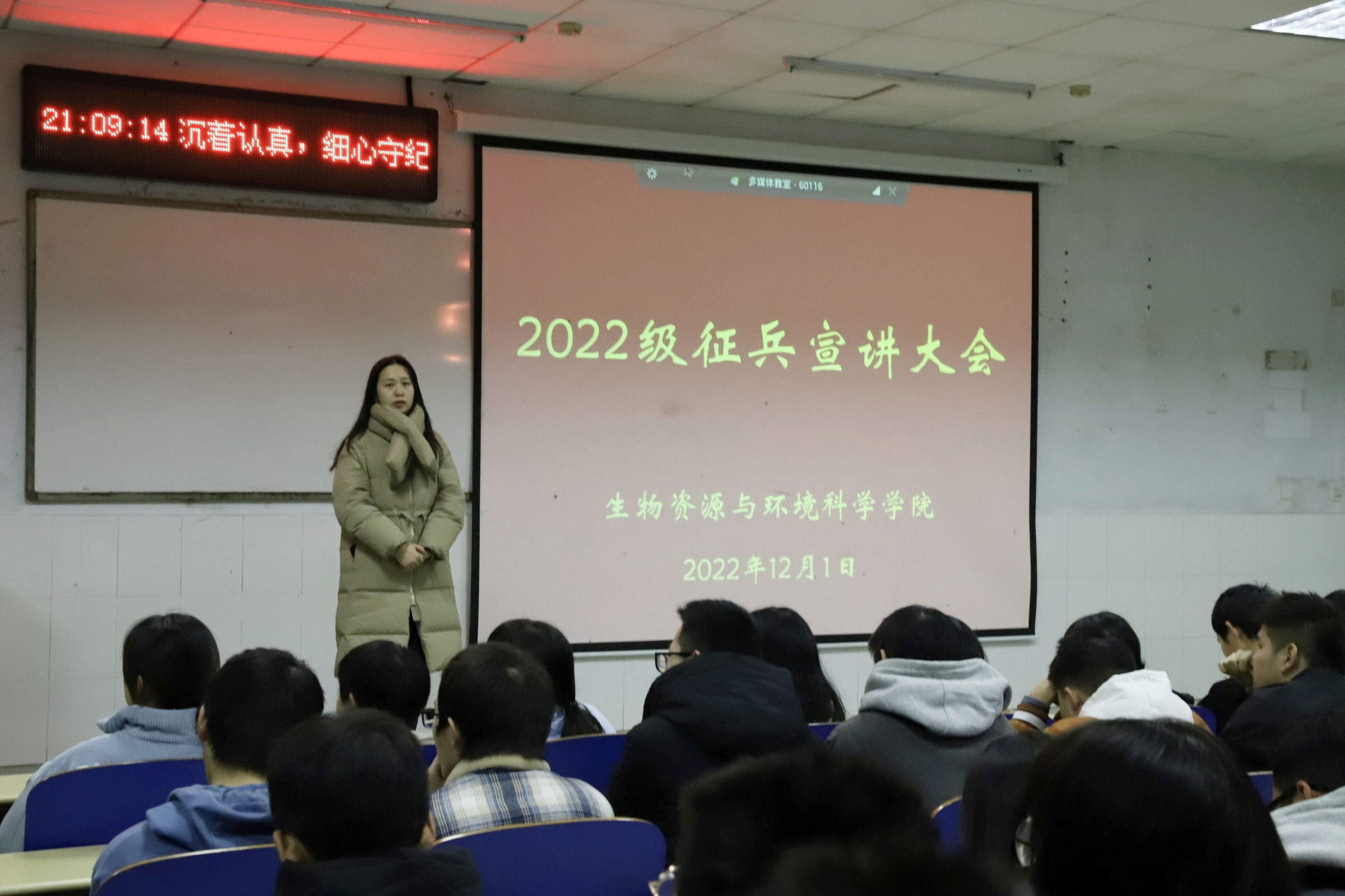 本网讯(通讯员 许子鑫、赵宸)“参军尽义务,戍边卫祖国”,为深入贯彻征兵工作宣传指示,进一步激发我院学子参军报国热情,12月1日、12月2日晚,我院于第六教学楼60116教室举行2022级征兵宣讲大会。与会人员有我院2022级辅导员唐雯熙与2022级全体学生。会议由唐雯熙主持。