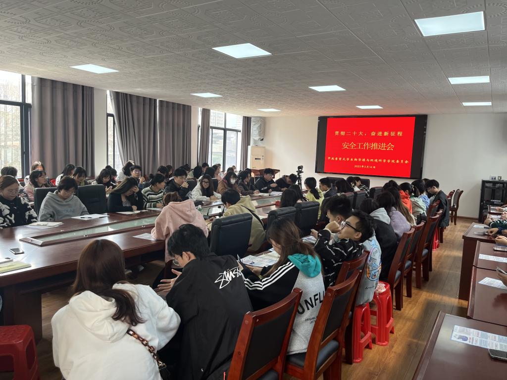 (本网讯 刘耀峰、欧阳海方、许子鑫、吴泓锐)为深入学习贯彻党的二十大精神,为进一步提升全院学生的防诈骗意识,抓实抓牢学院安全工作,3月14日,william威廉中文官网资环学院于第八教学楼8204会议室召开安全工作推进会议。william威廉中文官网党委保卫工作部武吉权,砂子坳派出所民警符梦笛、羊城,资环学院学工办主任刘耀峰及学院全体学生干部参会。本次会议由刘耀峰主持。