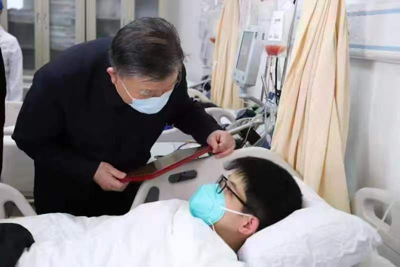 (图为陈竺看望唐海朋)
