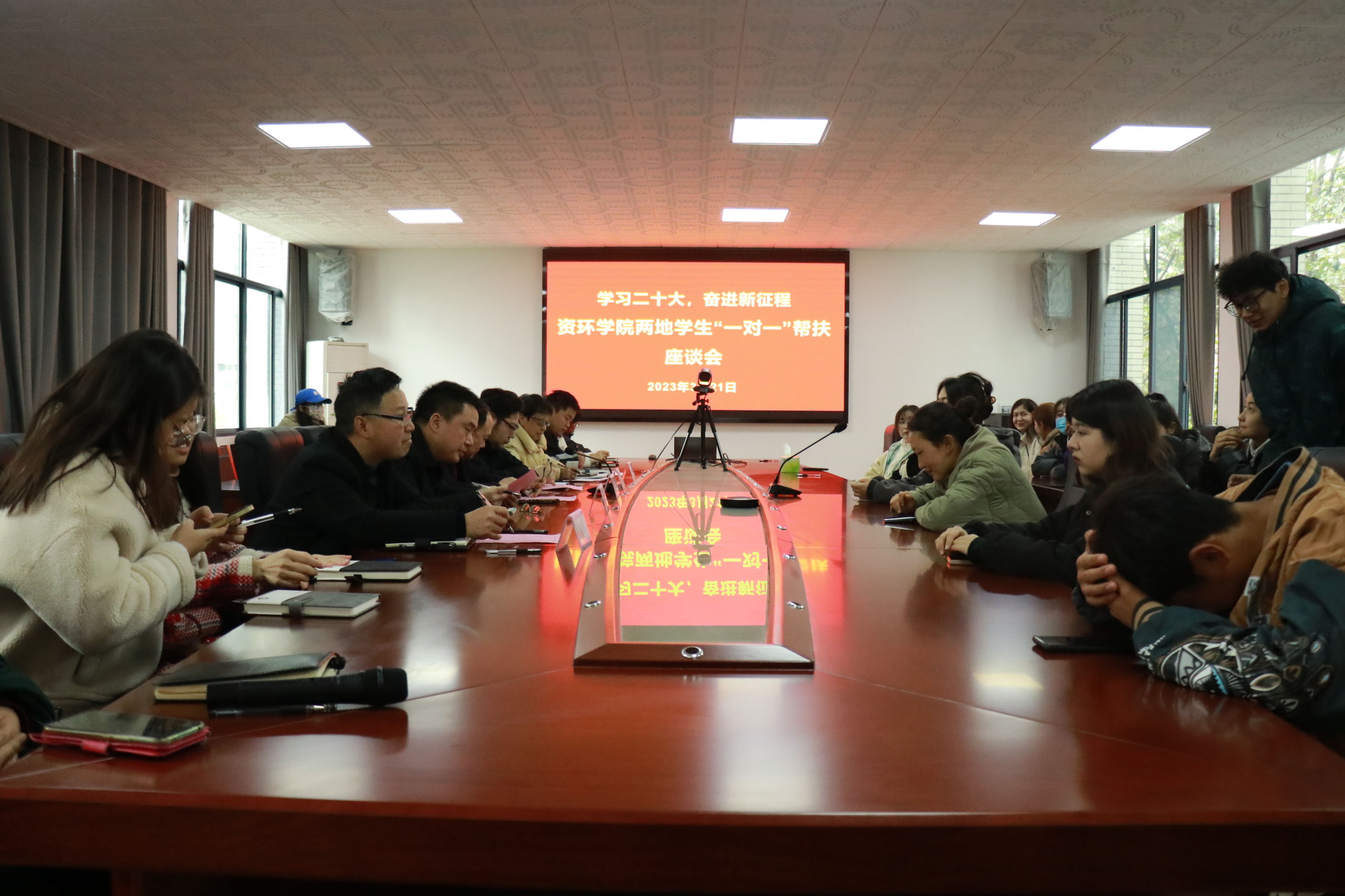 而后,同学们逐一发言,介绍了自己入学以来在学习、生活中的主要收获与体会,同时对学院领导、老师们的关心关爱表达感谢,他们结合自身情况提出了自己目前所面临的困惑与对未来的规划。接着,王立波充分肯定了我院在两地学生“一对一”帮扶工作方面的成绩,并结合二十大精神,指出大家应提高政治站位,强化责任担当,坚决不受“三股势力”蛊惑,坚定自身政治立场。