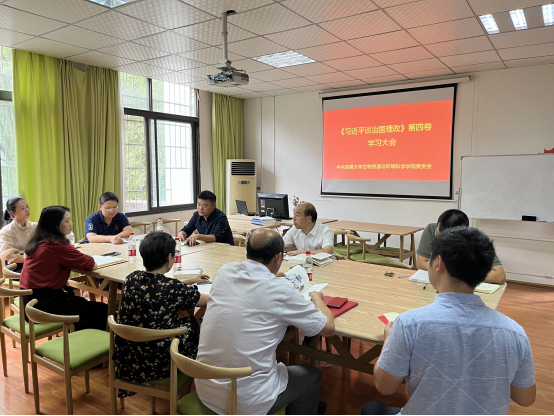 会上,田向荣对《习近平谈治国理政》第四卷第十四章中“努力建设人与自然和谐共生的现代化”进行领学;尚久对《让群众过上好日子——习近平正定足迹》第二章中“帮助黄石两姐妹补火车票”进行领学。随后,易浪波畅谈了学习收获和感悟:自己要进一步学习领悟新形势下加强我国生态文明建设的相关文件精神,作为环境专业教师一定会在课堂上传播好绿色文明,增强同学们节约意识、环保意识、生态意识,倡导大家简约适度、绿色低碳的生活方式。刘耀峰表示作为教师、辅导员,不仅要注重工作方式、工作创新,也要关注学生的学习进步,更要及时为学生排忧解难,做好思想引领的同时,做好对学生的帮扶工作。