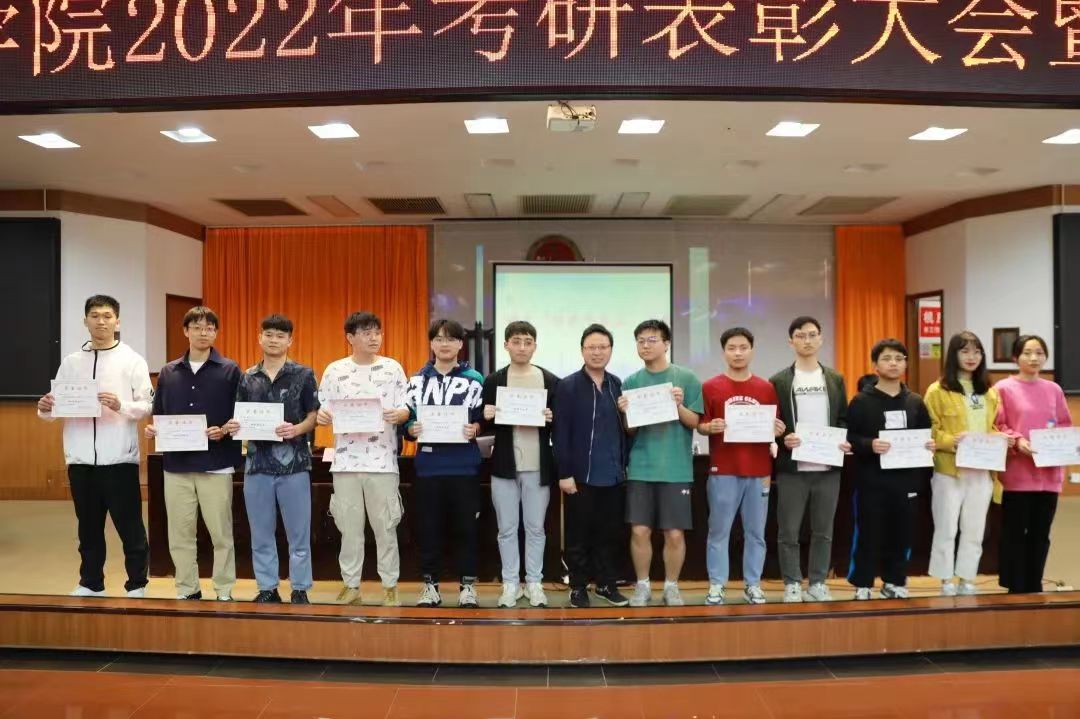会议伊始,我院考研上岸优秀学生代表作考研经验分享与交流。随后,田向荣详细介绍了学院今年的考研总体情况及近五年来各专业的考研情况,同时激励2019级全体同学要不断提高自身能力,努力学习。接着,周强宣读《资环学院2022届特优毕业生表彰名单》,我院领导为受表彰学生颁奖,并合影留念。颁奖结束后,考研毕业生为2019级学生代表赠送考研资料,以小小又厚重的书籍笔记来预祝他们考研一帆风顺。