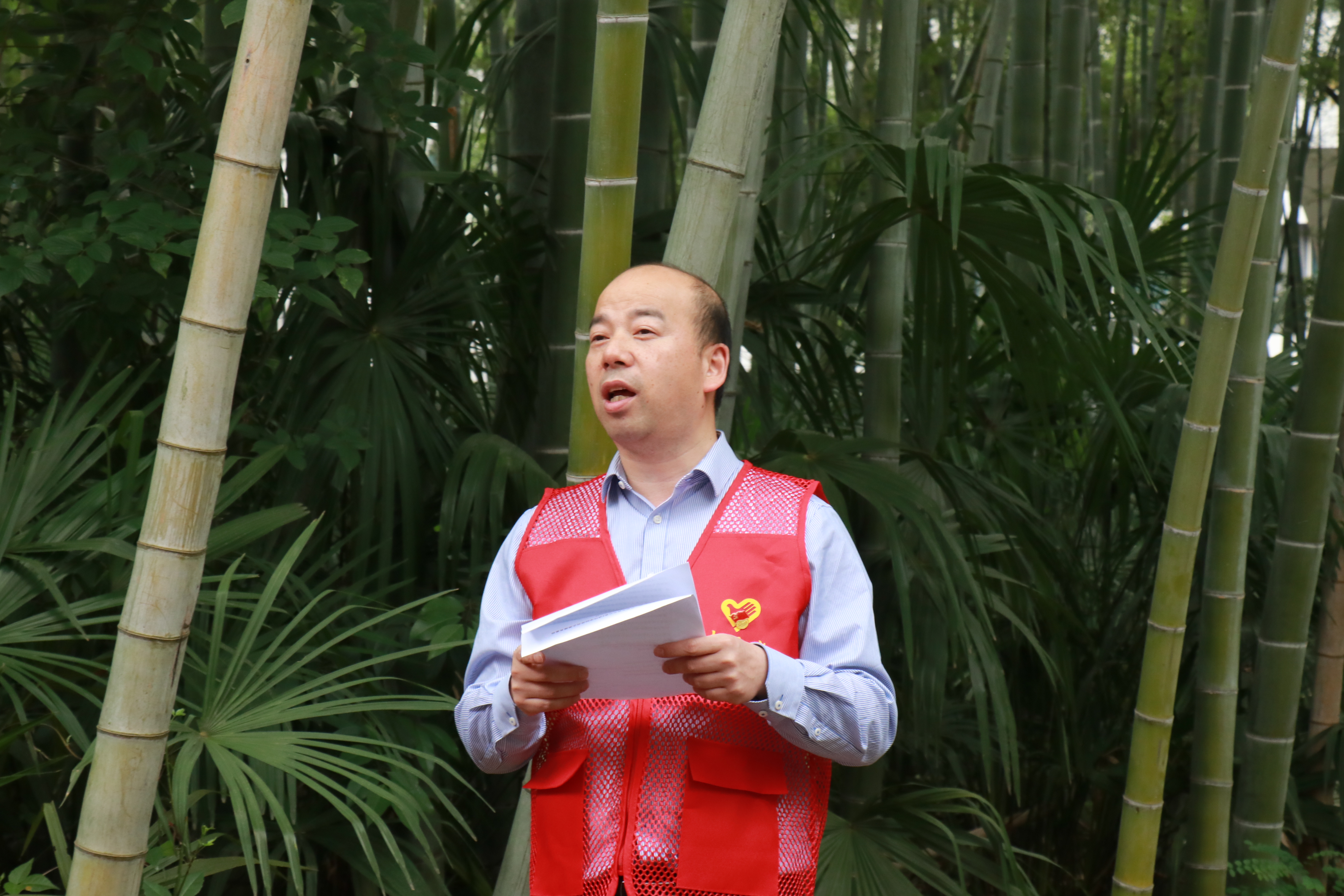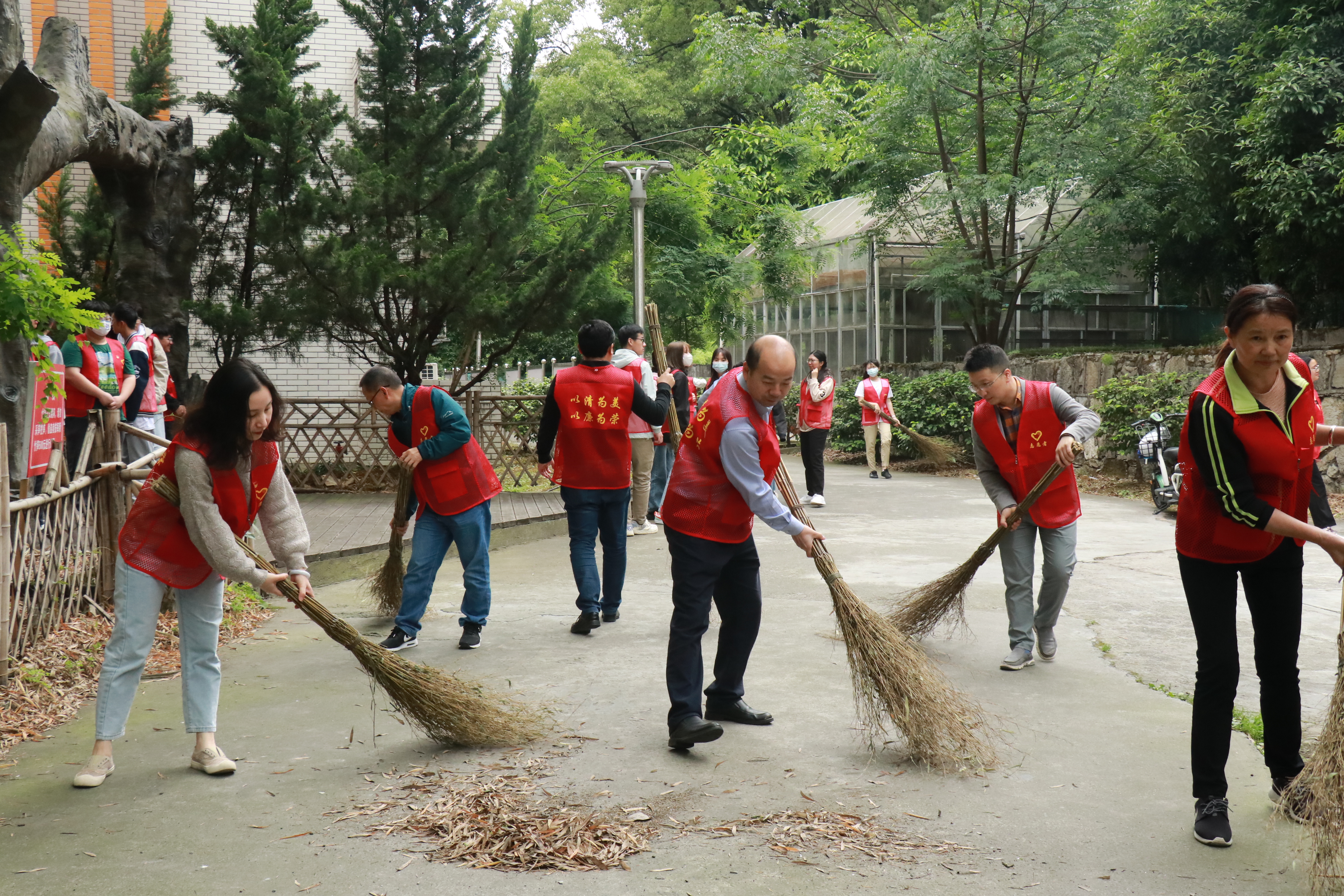 最后,全体到场领导、老师和学生党员在竹语林开展了志愿服务活动,将竹语林及周边清扫得干干净净。