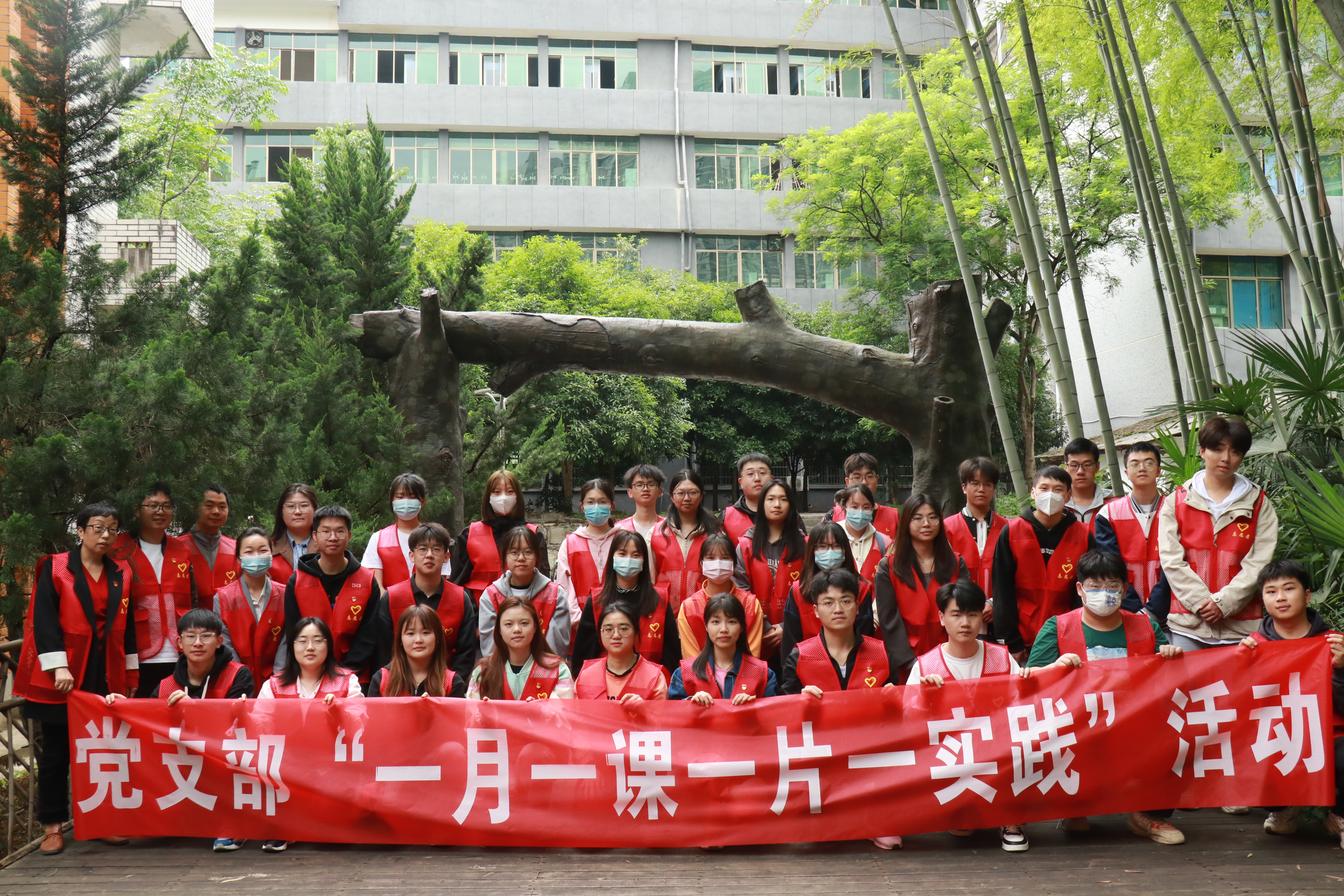 本网讯(通讯员 吴淑英)为深入学习贯彻党的二十大精神,切实让“学习贯彻习近平新时代中国特色社会主义思想主题教育活动”走深走实,5月23日下午,校纪委、监察专员办联合我院、校党委统战部于竹语林举行党员志愿服务基地揭牌仪式暨各党支部“一月一课一片一实践”活动。校党委副书记王绯、宣传部常务副部长李洪雄、统战部常务副部长石红梅,校纪委副书记兼监察专员办主任王永强、监察专员办副主任胡罡、离退休处副处长王映、我院党委副书记尚久以及相关学院、单位的教师和学生党员代表参与活动。揭牌仪式由王永强主持。