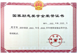 (图为湖南省大学生化工设计竞赛证书) (图为国家励志奖学金证书)