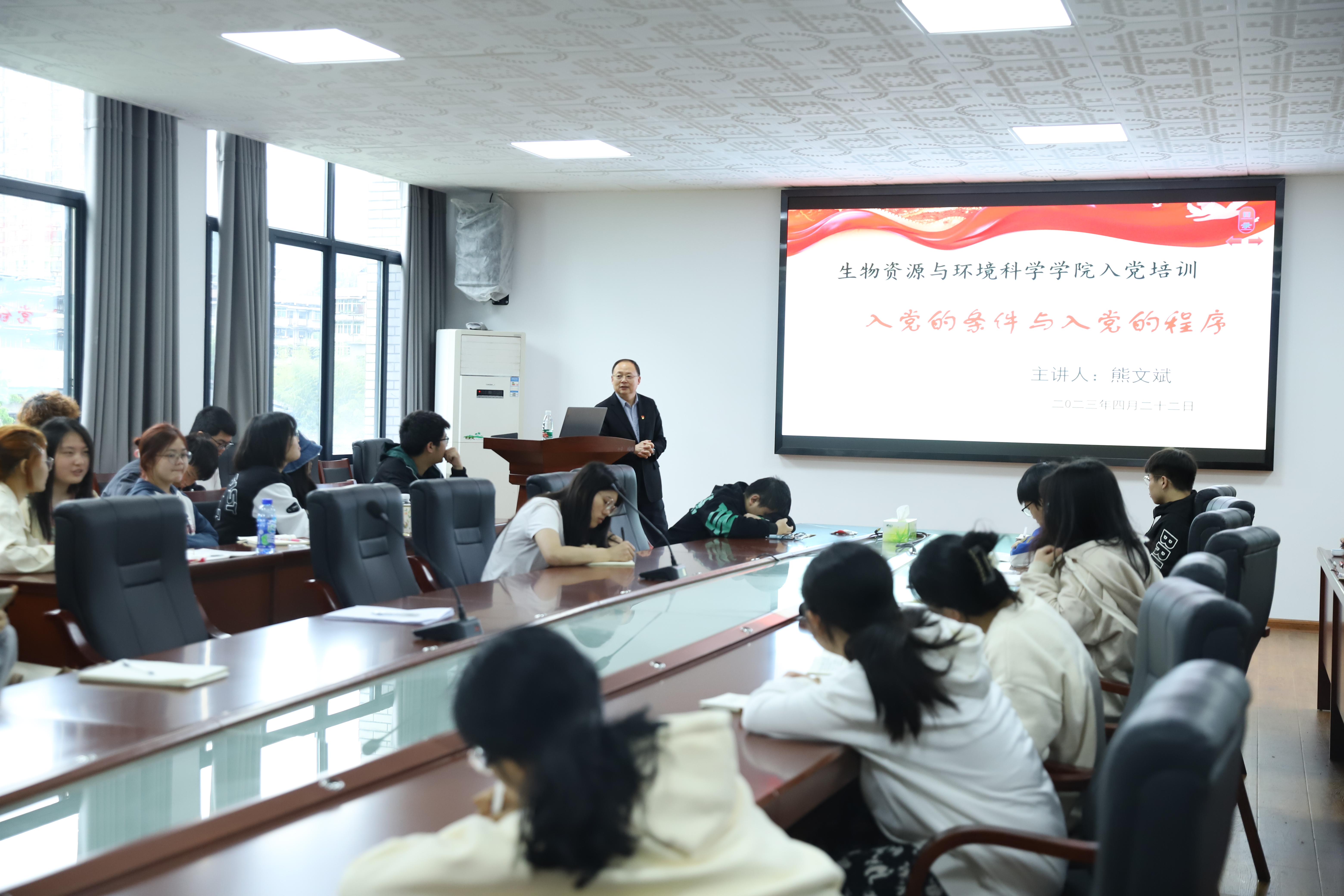 22日上午,王先述就“中国共产党的最高纲领和现阶段奋斗目标”主题展开讲述,谈及纲领对党的重要性和当代大学生应自觉把中国梦与事业梦、家庭梦和个人梦有机统一,完成新时代党的使命任务。接着,熊文斌重点向同学们介绍了入党的条件和入党的程序,他强调“态度决定高度,付出才能杰出”,并且鼓励大家用实际行动争取早日入党。随后石维贵以“民主集中制”为中心词,讲解了相关知识、分析了与之相关的政事,强调要坚持党的全面领导,并且劝诫大家自觉维护绿色网络环境,抵制不当言论,要坚定自己的政治方向、立场和信念。随后,尚久用以往的实例向大家介绍了党的性质和宗旨,也让学员们学习到中国共产党区别于其他政党的显著标志。