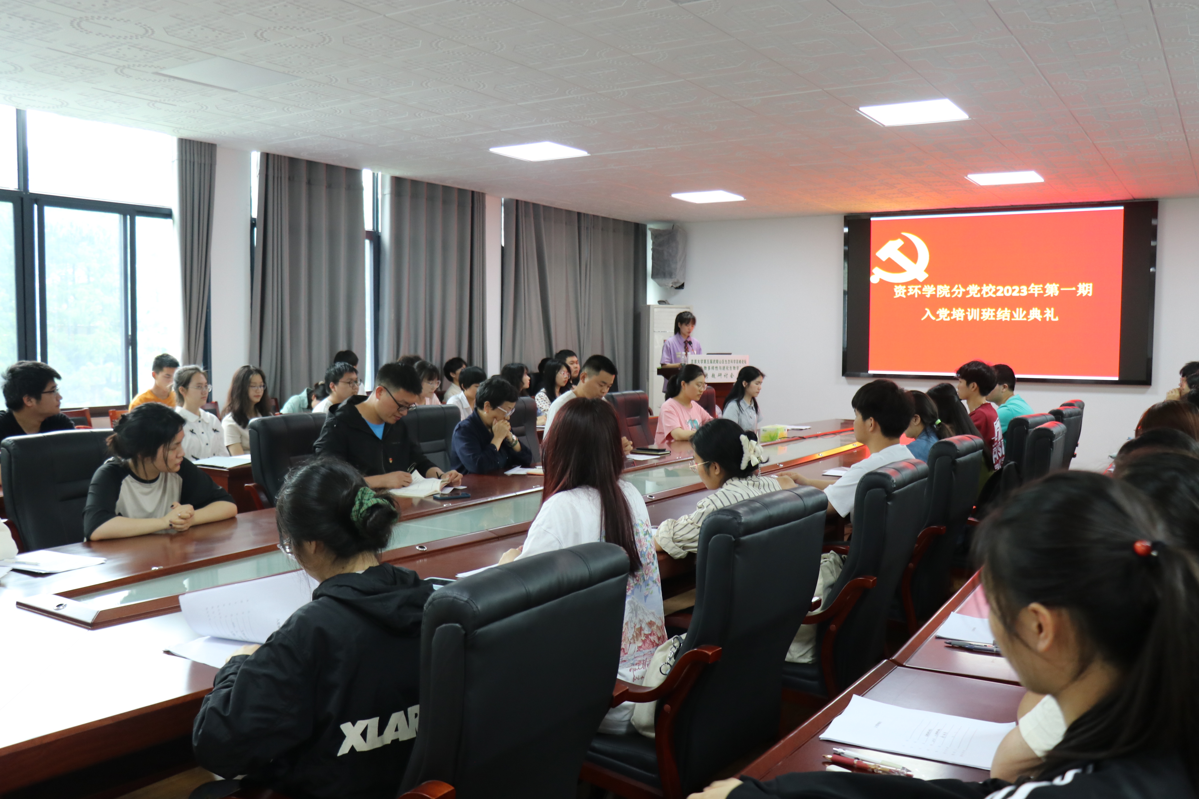 本网讯(通讯员 欧阳海方、吴泓锐)5月6日中午,我院于第八教学楼8204会议室举行2023年第一期入党培训班结业典礼。我院党委副书记尚久,学生第二党支部书记刘耀峰,学生第三党支部书记闫亮以及入党积极分子共同参与了该典礼。典礼由何佳秀主持。