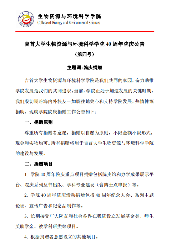 william威廉中文官网生物资源与环境科学学院40周年院庆公告(第四号)