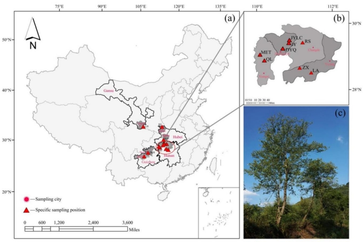 杜仲是杜仲科杜仲属的唯一植物,也是中国特有的珍稀濒危二类保护植物,其叶富含环烯醚萜类、酚酸类及黄酮类等多种有效成分,具有抗疲劳、抗氧化、抗衰老、降血压、调节免疫、抗炎等药理作用。研究杜仲叶表型多样性及非生物因素对其变异的影响,为我国杜仲种质创新和资源保护,驯化栽培和资源的可持续利用提供科学理论依据。研究成果以“Leaf phenotypic variation and its response to environmental factors in natural populations of Eucommia ulmoides”为题发表在植物学重要期刊BMC Plant Biology。该论文通讯作者为田春莲教授,第一作者为我院生态学专业硕士研究生龚慧敏。
