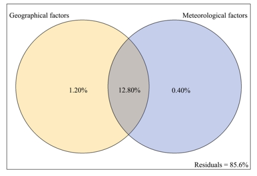 图2 影响叶片大小性状重要环境因子的方差分解图